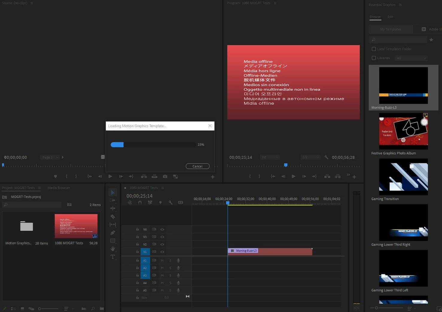 Hi. I'm working in Adobe Premiere v23.6 on a Windows machine and MOGRTs from the Essential Graphics panel won't load anymore. They all get stuck at 15% regardless of whether they're the stock ones that come pre-installed with Premiere, or ones I built myself in After Effects. After some reserach, I found this was a problem several years ago, but I can't find any fixes for the most recent version of Premiere. Any suggestions?
