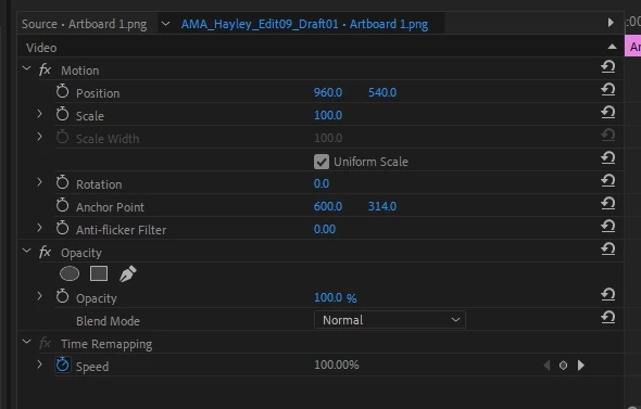 Motion and Opacity modules missing in Effect Controls