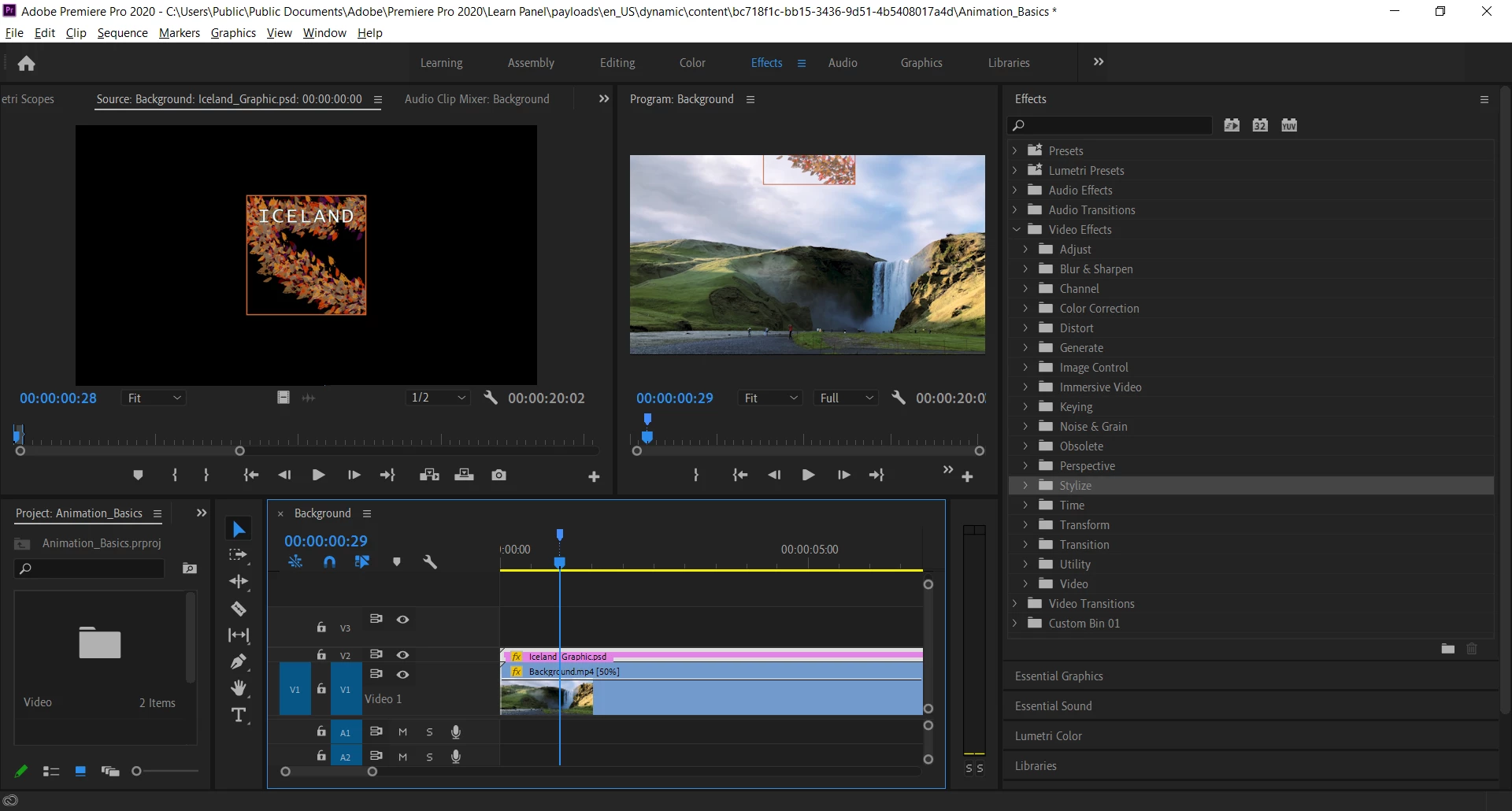 To do this task you would go to Effects control panel and select position property under the Motion settings tab correct?