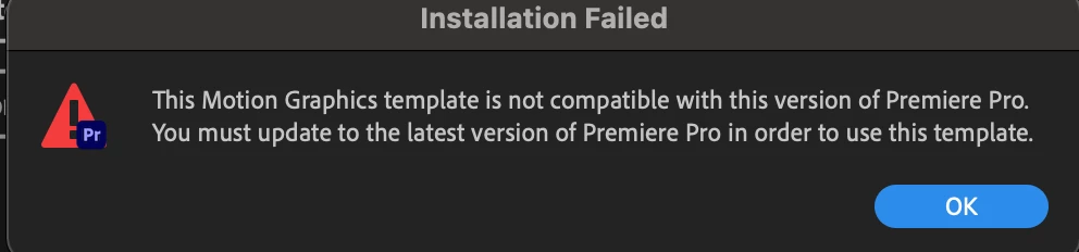 Motion Graphic template won't install (MOGRT)