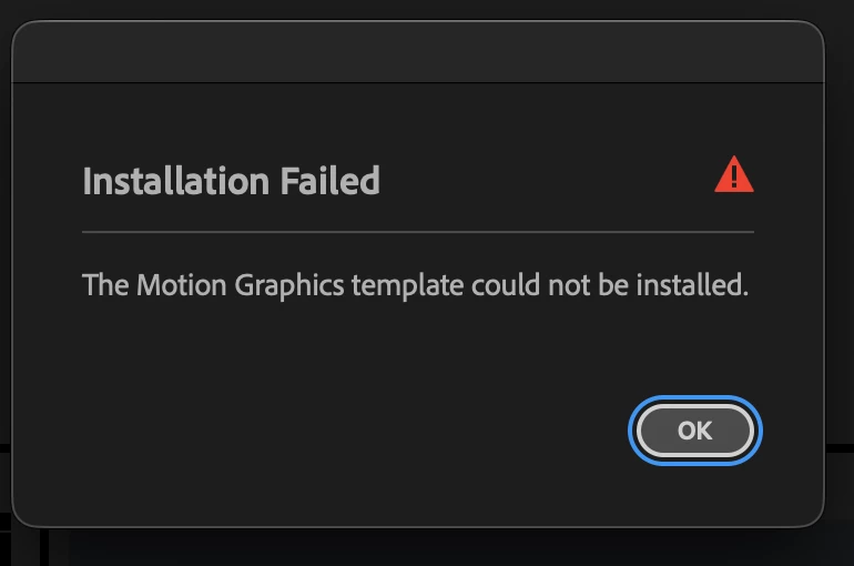(MOGRT) Motion Graphics template not installing.i am using premiere pro 25 and beta version.both show same error.i am using macbook pro m1 with ios tahoe