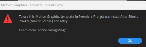 i get the error above every time i try and put a motion graphic on one project timeline in premier pro. i already have after effects 2024 installed.