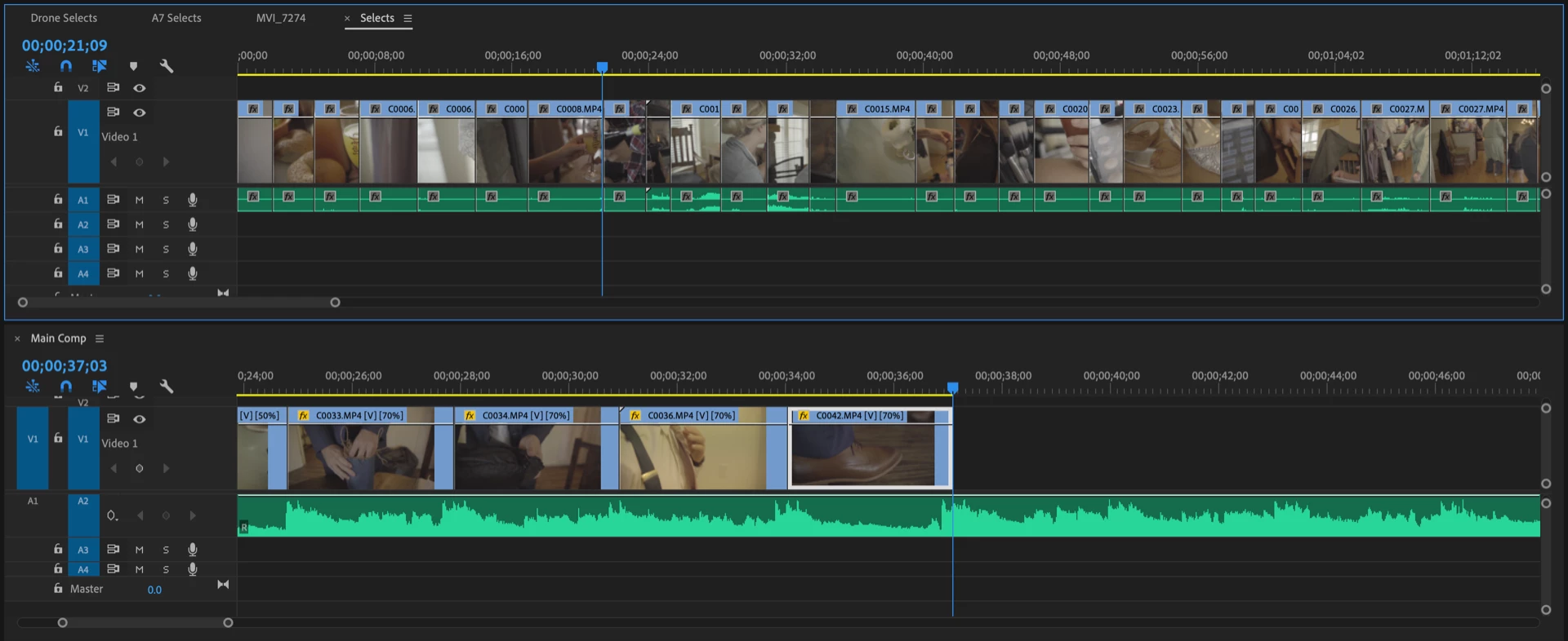 So I've started editing with the "Pancake" editor layout when editing event videos (I go through all the footage and choose my "selects" and then simply pull from that timeline down to edit in my main sequence (As seen in the picture below). One problem I'm having that is slowing down my workflow is that when I pull a clip down from my selects sequence it copies the clip instead of moving it. I would like for the clip to be "moved" so that once I have used a clip in my selects, it disappears from that comp, that way I can spend less time looking for unused clips as I continue to edit. Does anyone know how to do this?