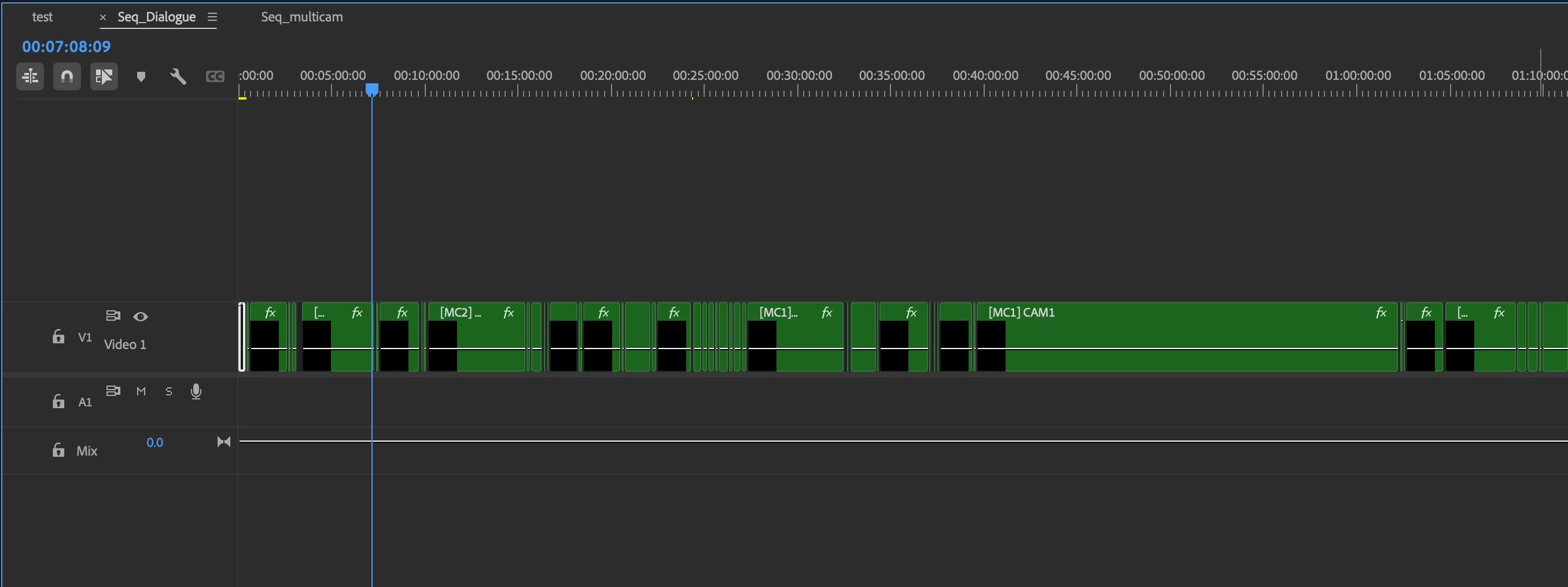 I have a parent sequence, with a nested sequence which then contains a multi-cam sequence. These three tracks are also nested sequences.