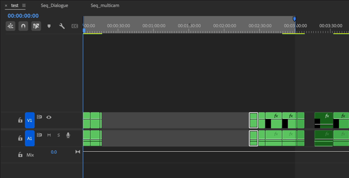 Next, I tried removing all the cuts in the nested sequence: