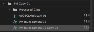 Also TRUE: any layer that has a multicam clip on it MUST be selected/highlighted (V1... V3.. and so on) in order to see the multiple angles. You CANNOT have a layer above it that is selected/highlighted if you want to see multicam.