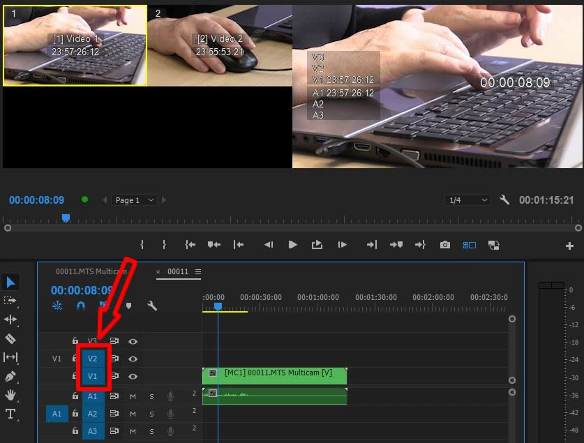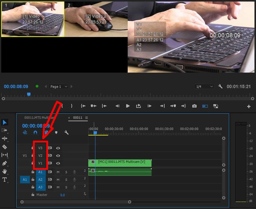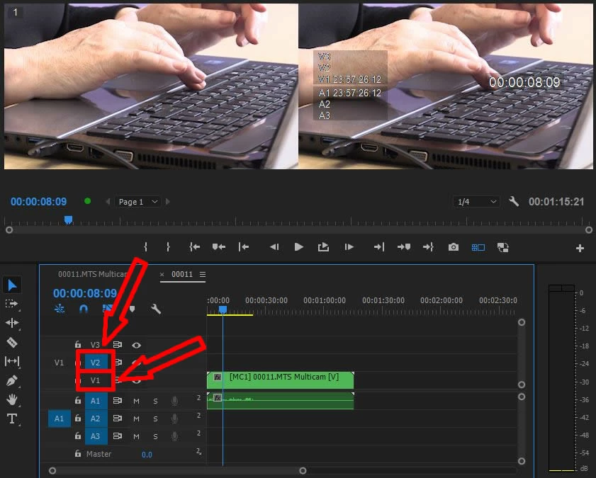 Sequence with multicam and another video layer targeted