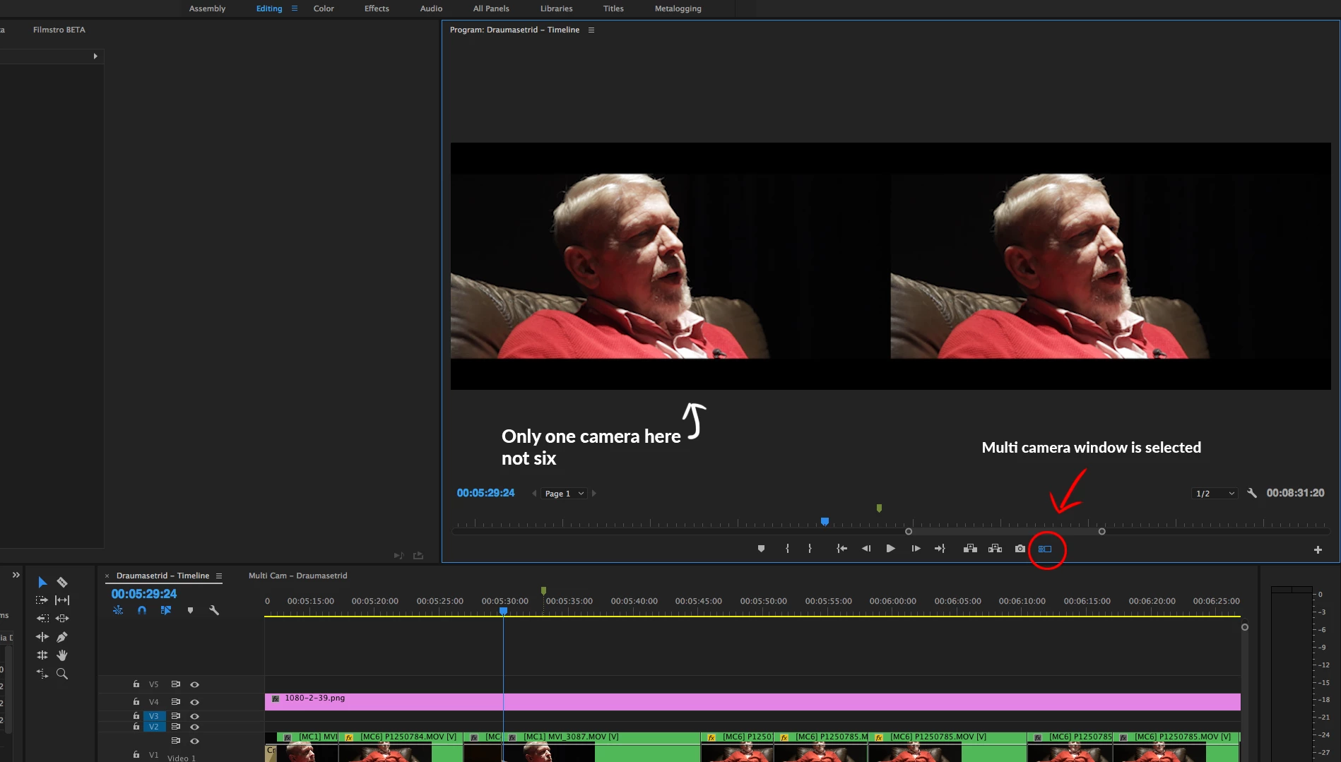 And this is my multi camera sequence. All the cameras are visible.