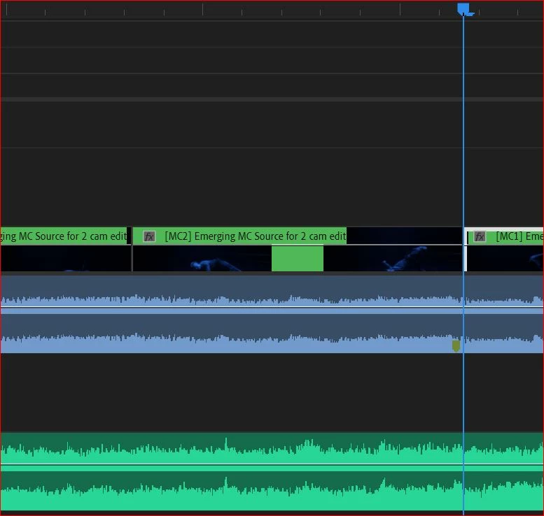 Doing a two camera multicam edit, simple switching between the two cameras.