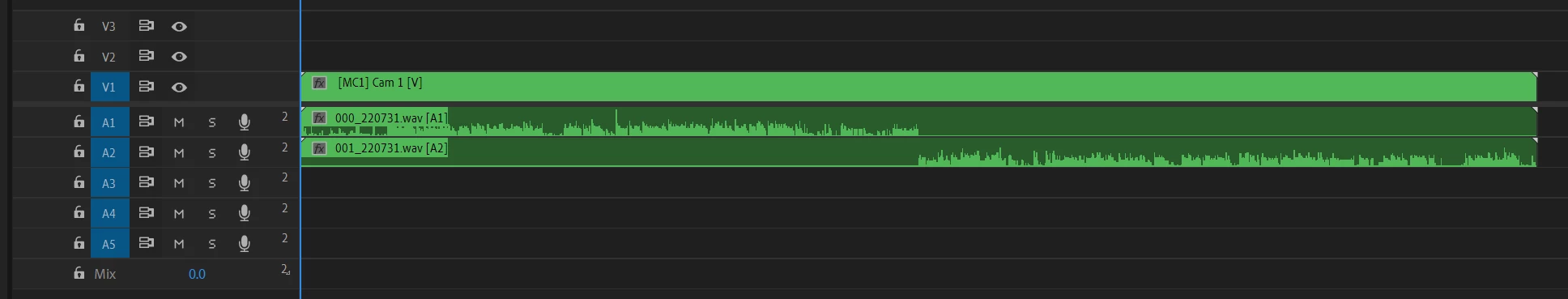 So, the question is, how do I handle the audio? How do I make a working multi-cam out of all of this with mono sound coming through both channels?