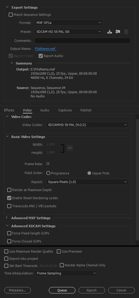 MXF MPEG-2 XDCAM HD 422 Long GOP 50. How?
