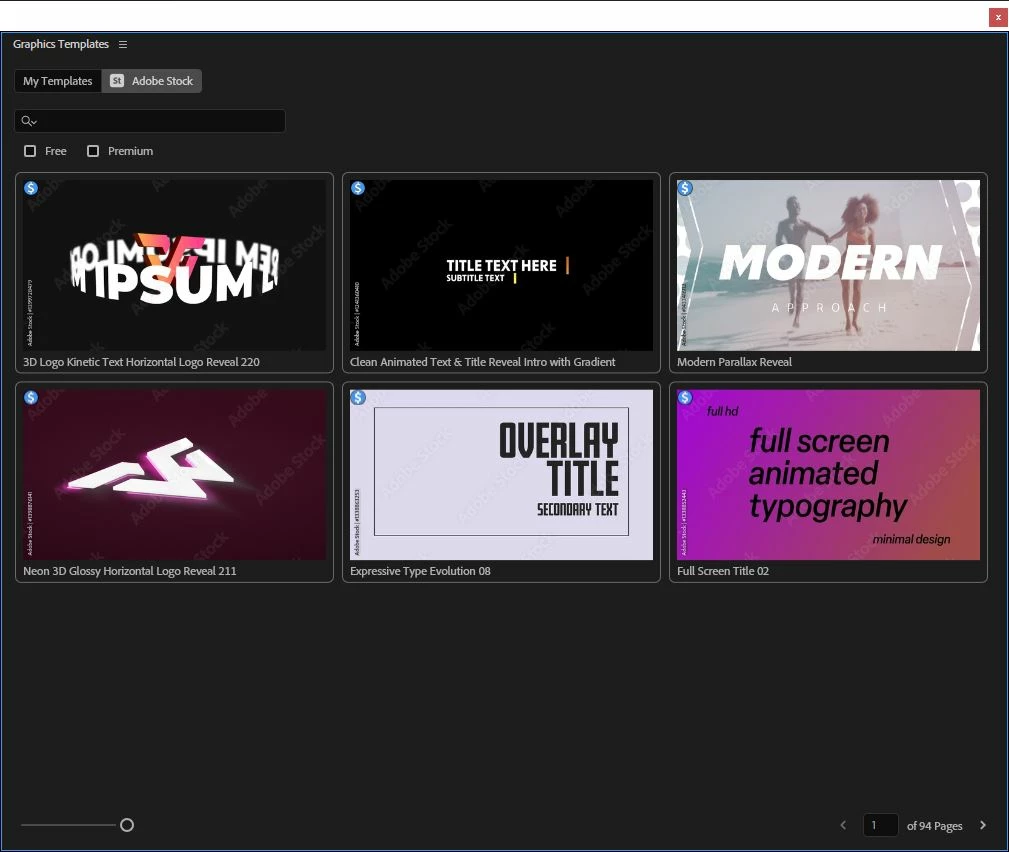 Once Premiere Pro is loaded I can see the folders of my "Libraries" but there are no graphics shown below. The "Get Graphics" is stuck at 10 percent.