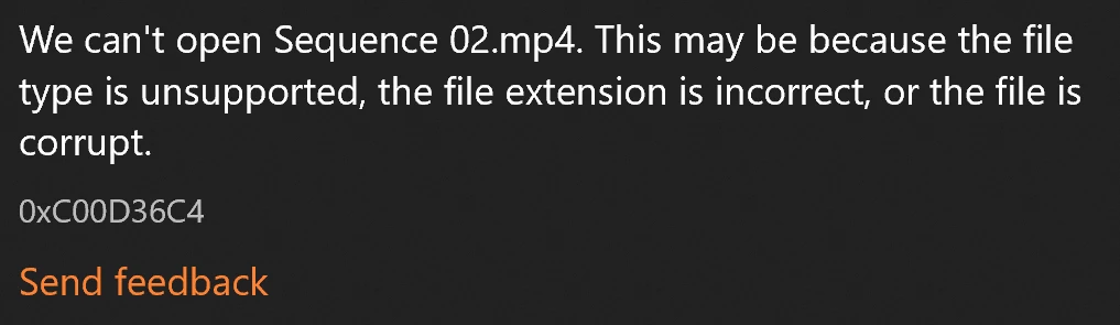 Now, I am trying to play it on my computer but I receive this error message from the media player.