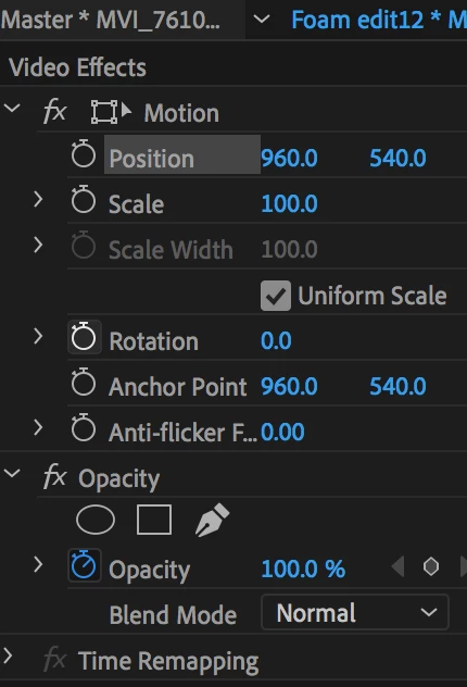 Here are the transform settings of this clip: