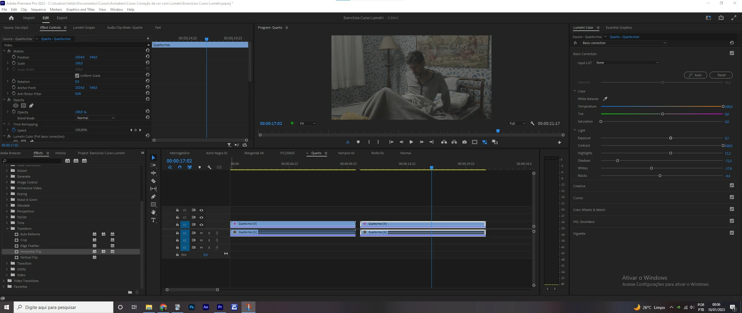 Não sei o que está havendo com meu premiere, se sem querer desabilitei alguma ferramenta ou se é defeito do programa mesmo, mas de uma hora pra outra eu não consigo mais aplicar efeitos nos meus vídeos. Percebi isso quando tentei aplicar o efeito horizontal flip, para inverter o lado da imagem, o que já estou acostumado a fazer. Como o efeito aplicado não surtia efeito, resolvi experimentar outras coisas e percebi que também não consigo utilizar as ferramentas do Lumetri. No exemplo abaixo, retirei toda a saturação e aumentei a temperatura ao máximo, para exagerar, mas não houve mudanças na imagem. Engraçado é que consigo mexer com escala e posição do quadro normalmente. E consigo aplicar o efeito na master, mas na instância não.