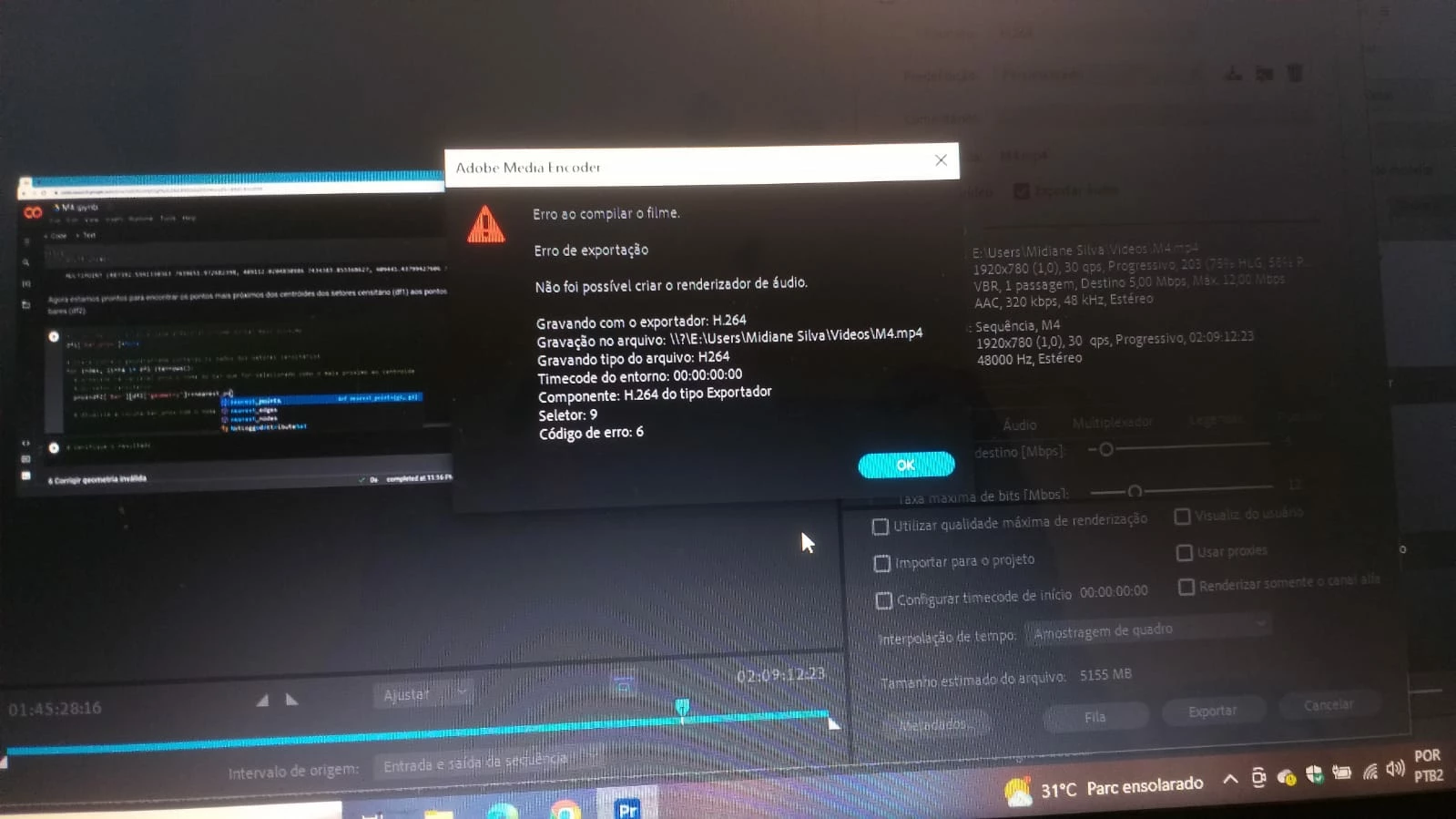 O/lá, quando tento converter minhas edições em mp4, aparece uma mensagem de erro. Isso aconteceu desde que atualizei o programa. O que devo fazer? Imagem de erro em anexo.