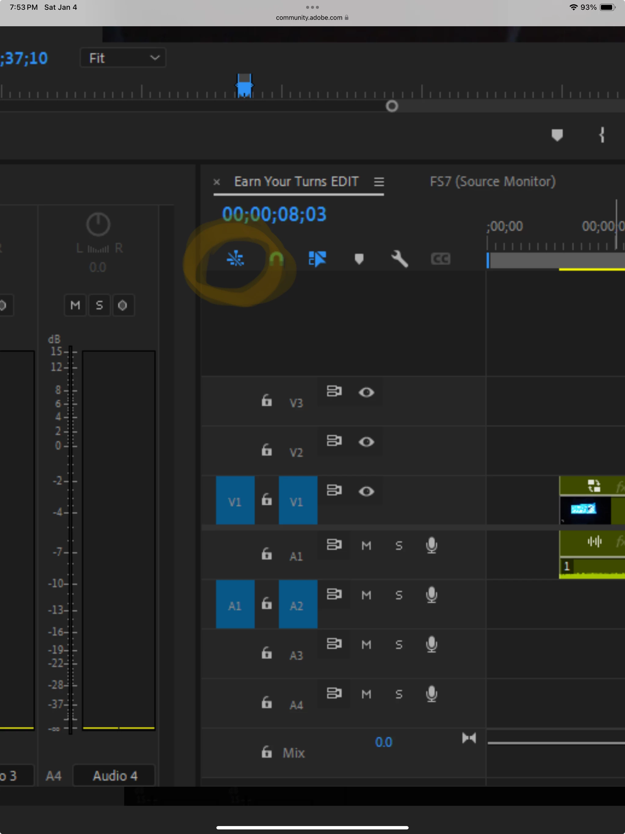 First photo shows the clip displaying the sequence name from the source monitor. Would really love it showed the source clip name instead. Second photo shows the FS7 Sequence in the source monitor.