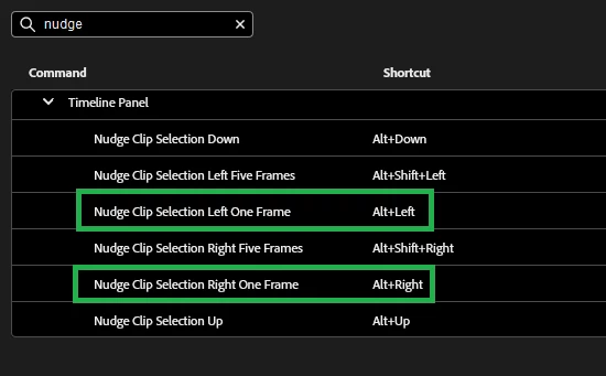 Nudge Feature/ Keyboard Shortcut Not Working In Timeline