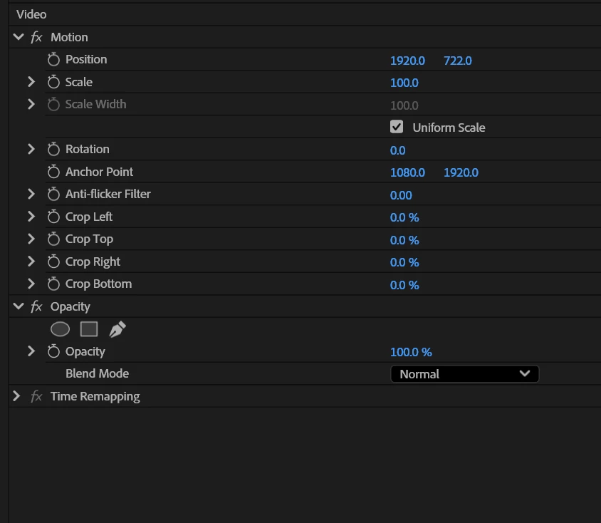 This is the settngs for the Opacity of the clips in question: