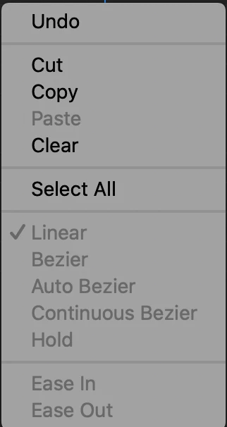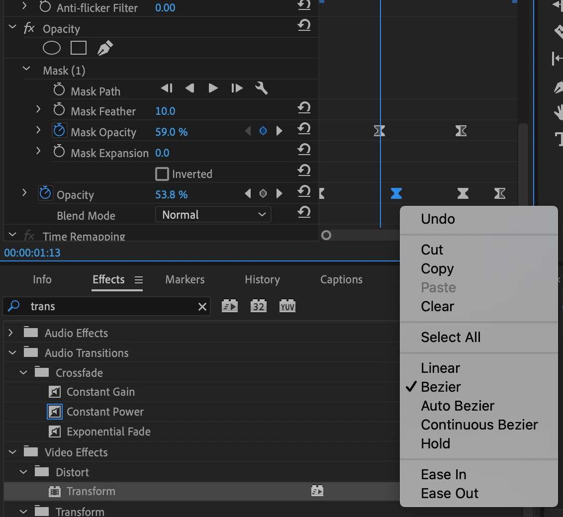 Hello, is it possible to use bezier for keyframes with opacity, for the movement of the mask, whether that be up, down, left or right, and expansion? At the moment it won't let me, they are just greyed out. Thanks in advance!
