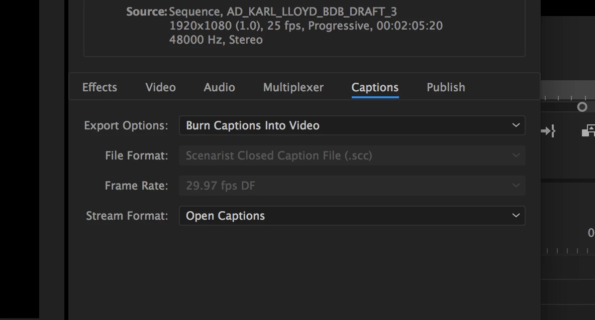 I am trying to export a sequence with a open captions block attached using Adobe Media Encoder.
