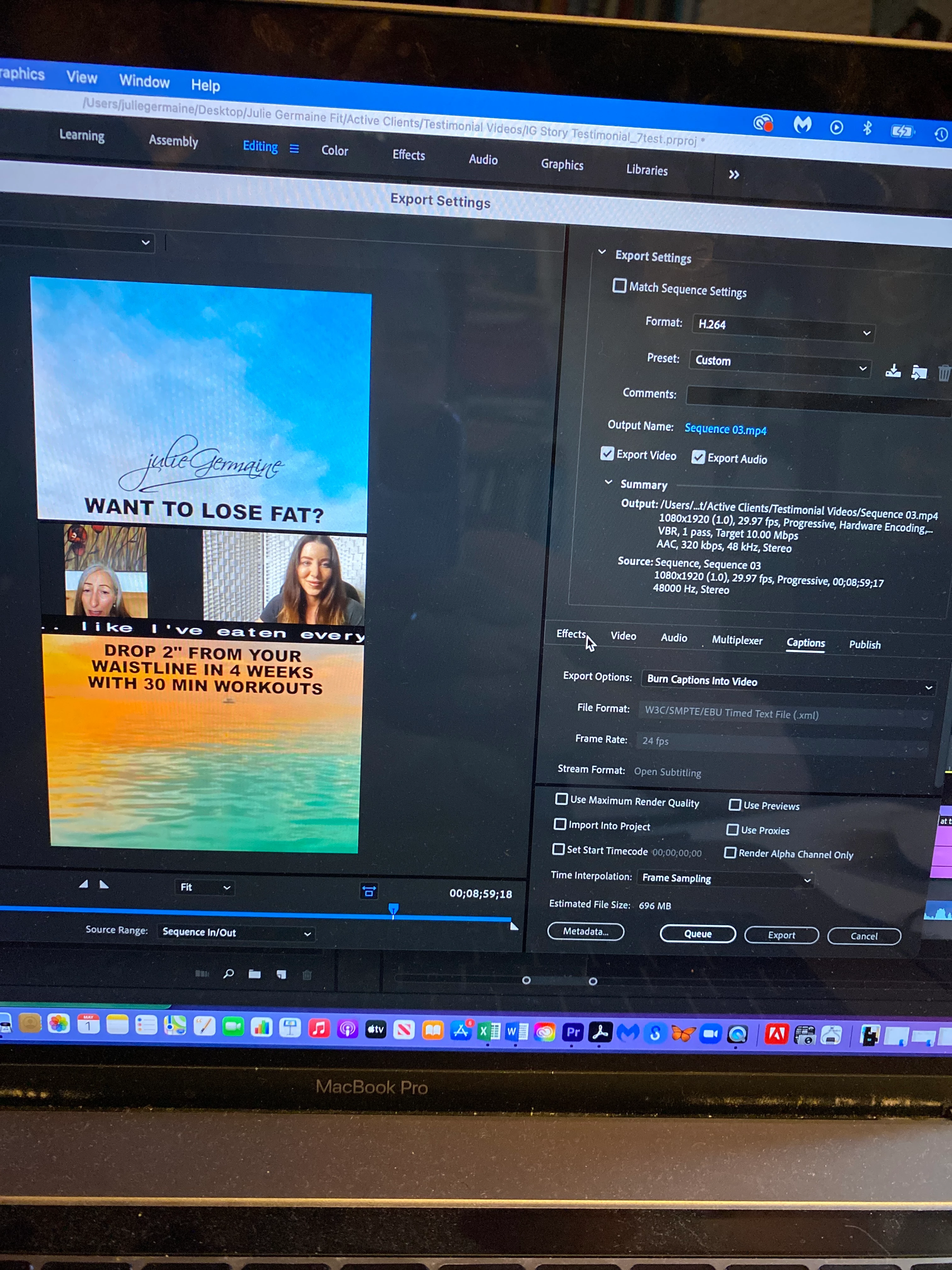 I've spent the time creating Open Subtitling for my eight minute long video and on export, when I select to Burn Captions into Video the formatting changes, so the subtitles that fit nicely within my 1080 x 1920 video size (intended for Instagram stories) are far too wide.