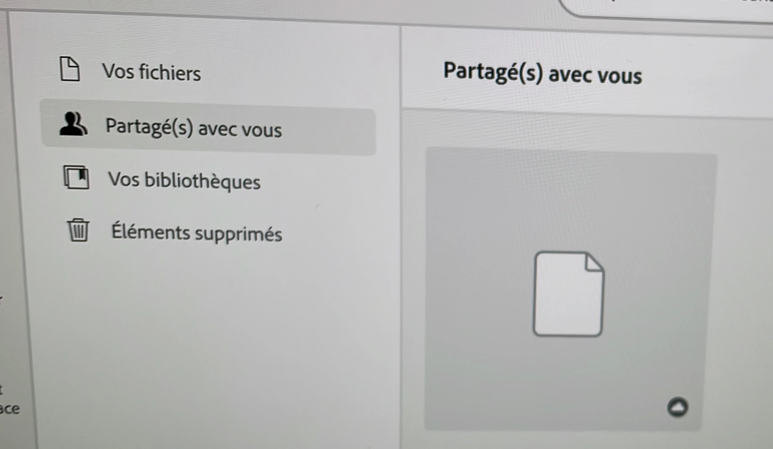 j'utilise creative cloud pour la 1ere fois, je dois utiliser un fichier qui m'est partagé mais celui ci reste grisé et inutlisable, pourtant je le vois dans la fenetre partagé. J'ai désinstallé et réinstallé mais ça persiste...