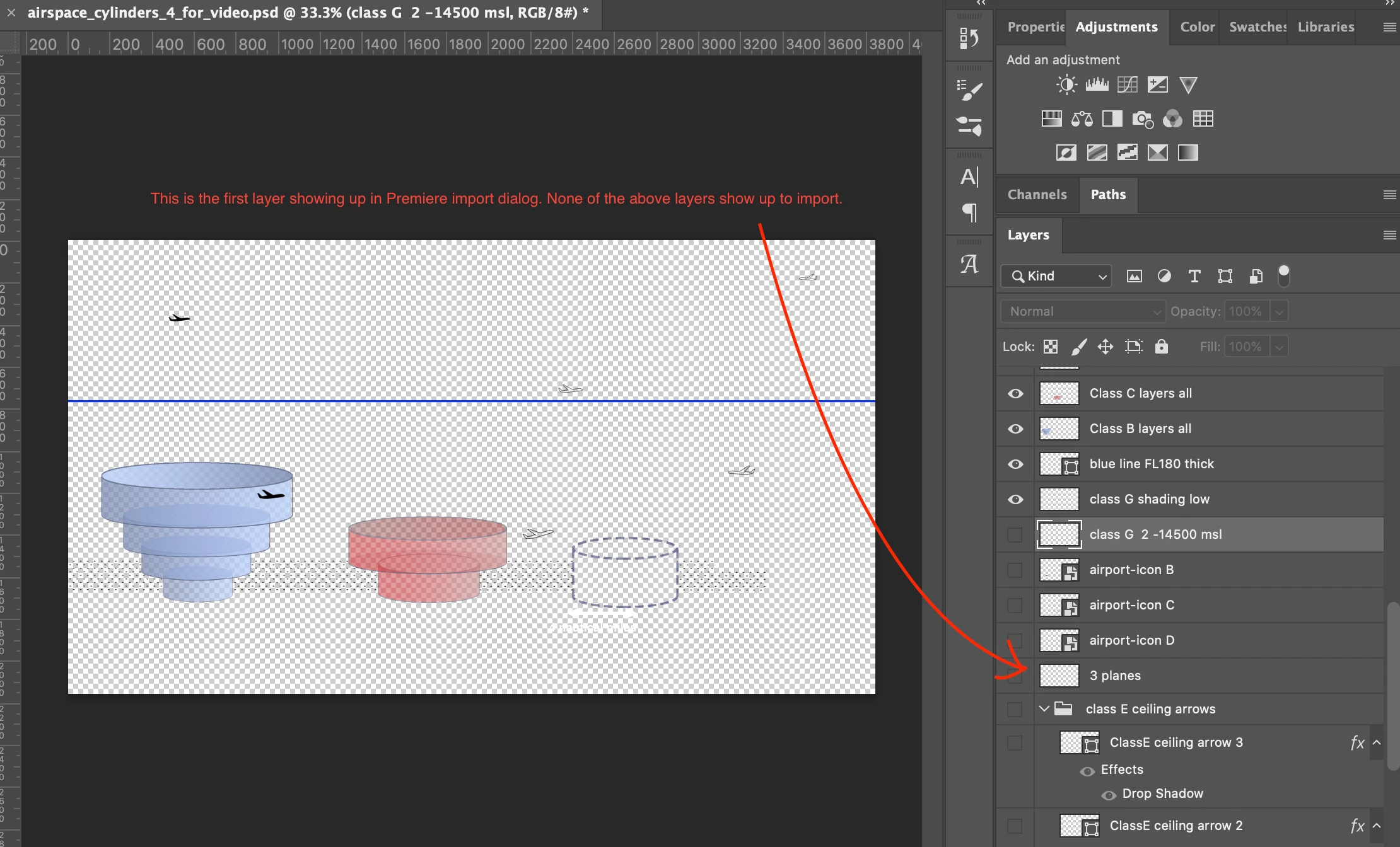 I don't really know if this is a problem in Pr or in Ps. Could there something I did to the Ps file/layers that makes them not show up in Pr?