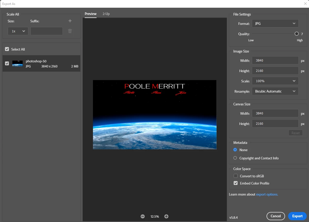 After exporting to mp4, I open the mp4 at full screen and the text and image look great.