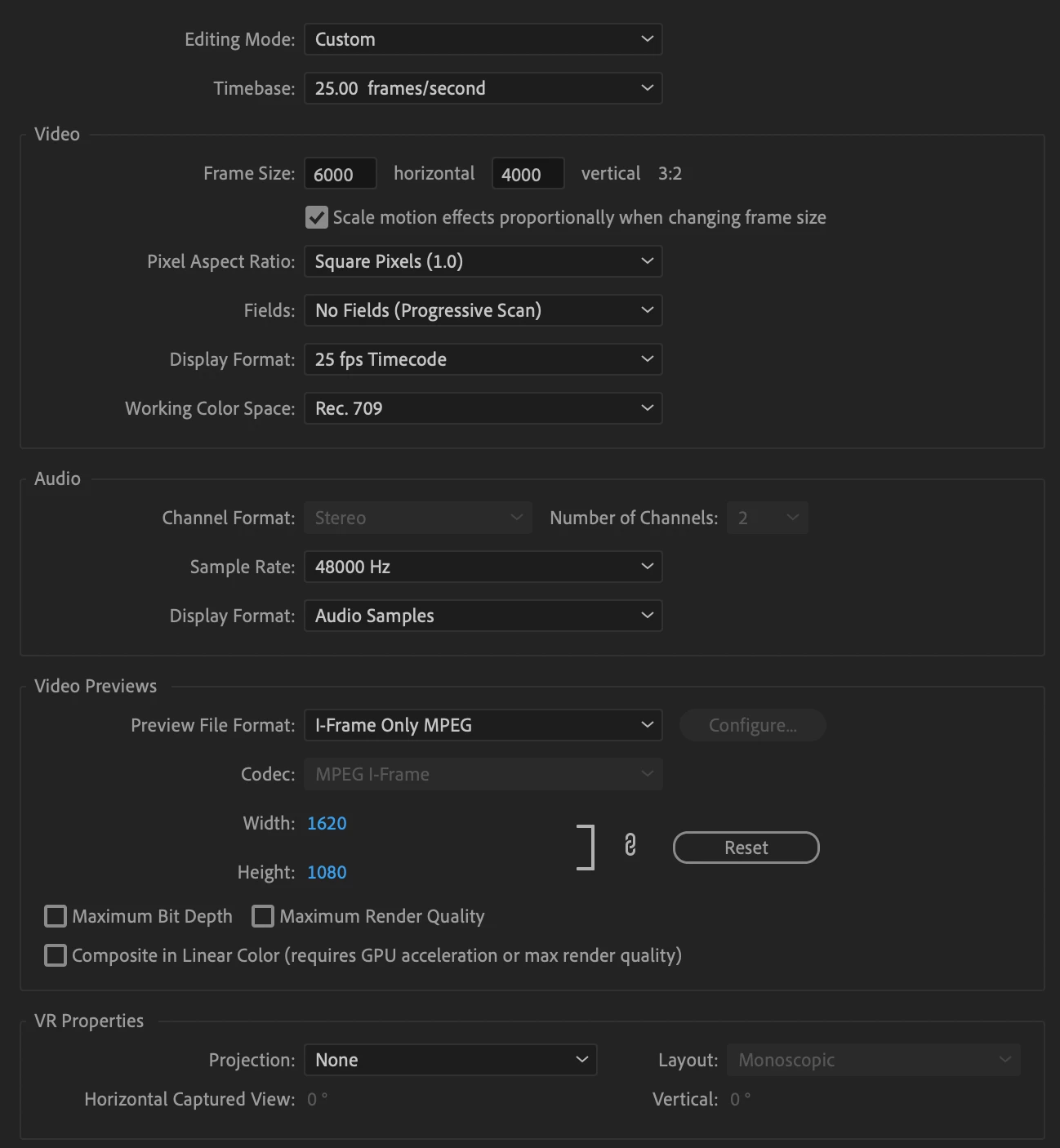 and here are the sequence settings (I didn't change any settings here, though; this was a new project in premiere and I just dragged the images in).