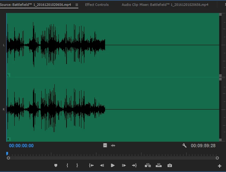 Now the issue is when I import said clips into Premiere, if it is a full 10-minute video the audio will cut out after a certain time. (image attached)