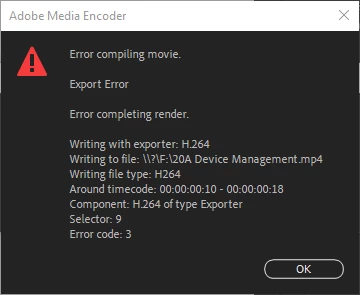 After updating to Adobe Premiere 2022 I recieved error code 3 for compling movie (see image for details). I have tried emptying the Adobe Premiere cache, setting the renderer ro Mercury Playback Engine Software Only and tried GPU Accelleration, deleted the appdata Adobe Premiere folder, deleted the Encoder Appdata folder and rebooted with no help.