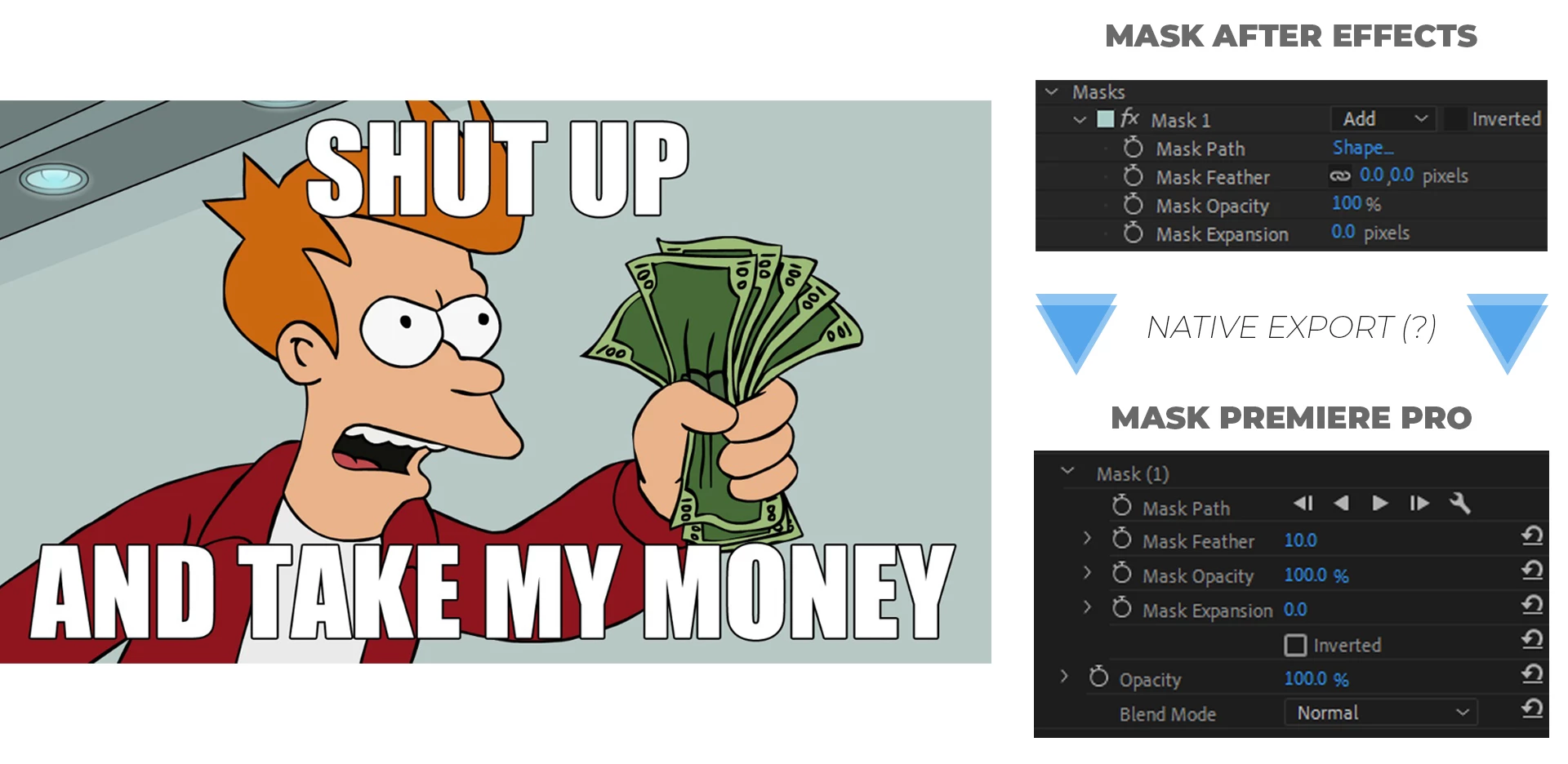 I tried to find a freelancer who specializes in creating plug-ins for Adobe, to pay whatever money I can for such a tool, but I haven't found any, because if a person is programming in C++, it doesn't mean that he knows how to create plug-ins for Adobe software, so I turn to the experts in this forum with one question: am I wasting my time searching for such an expert and can such connection be implemented if Premiere Pro really understand After Effects masks in practice?