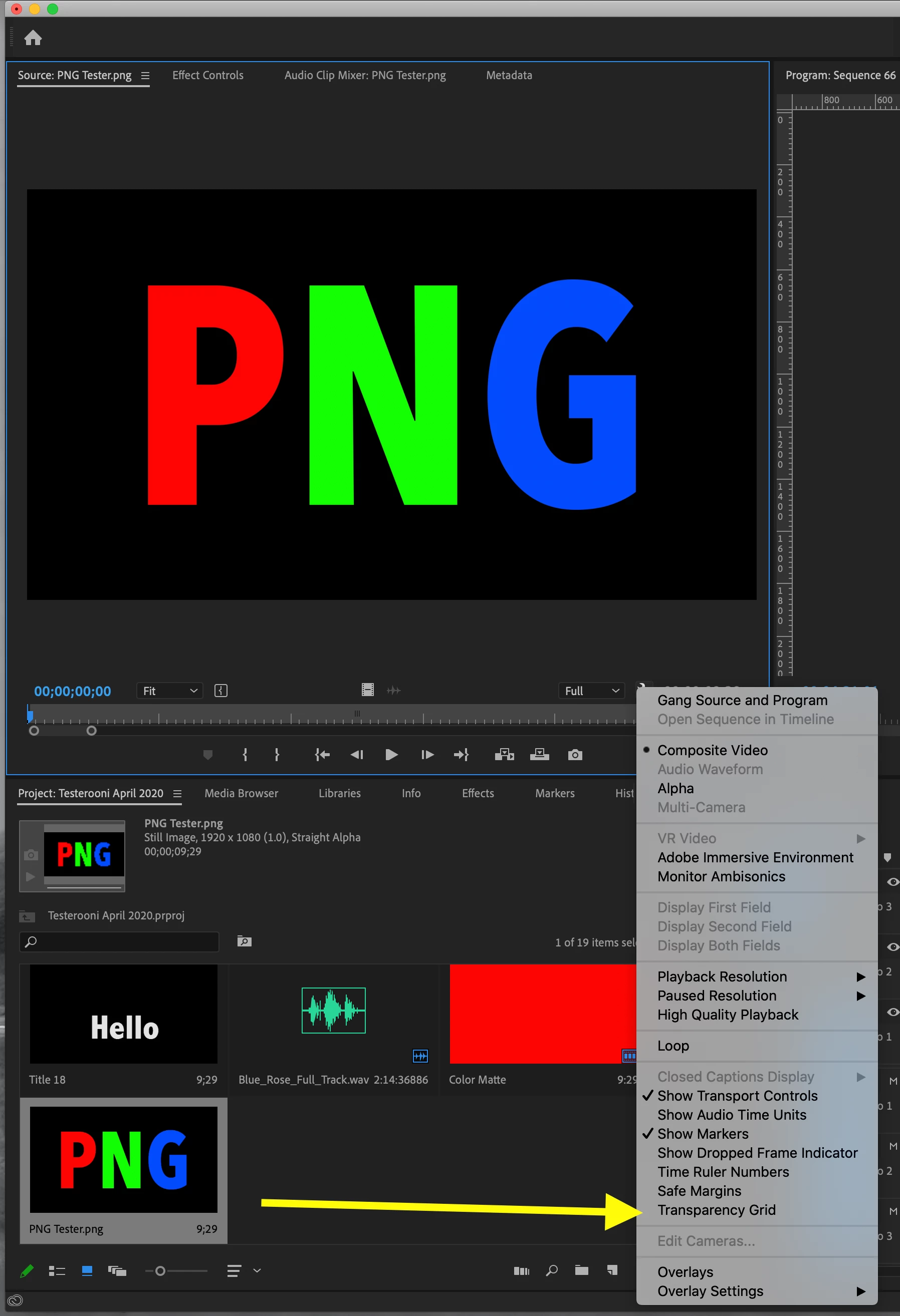PNG image still showing checkered background in Premiere Pro