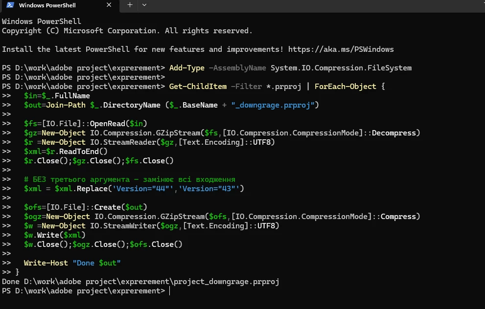 POWERSHELL FIX ADOBE PREMIERE ERROR PROJECT