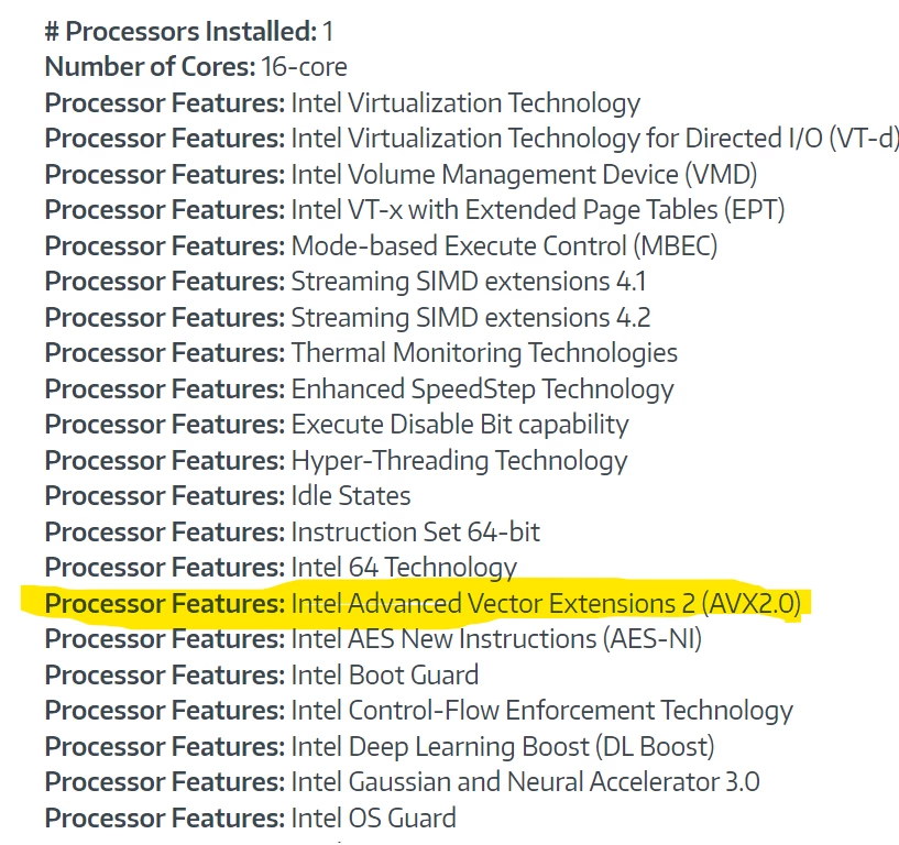 Says "Processor with Advanced Vector Extensions 2 (AVX2) support required"