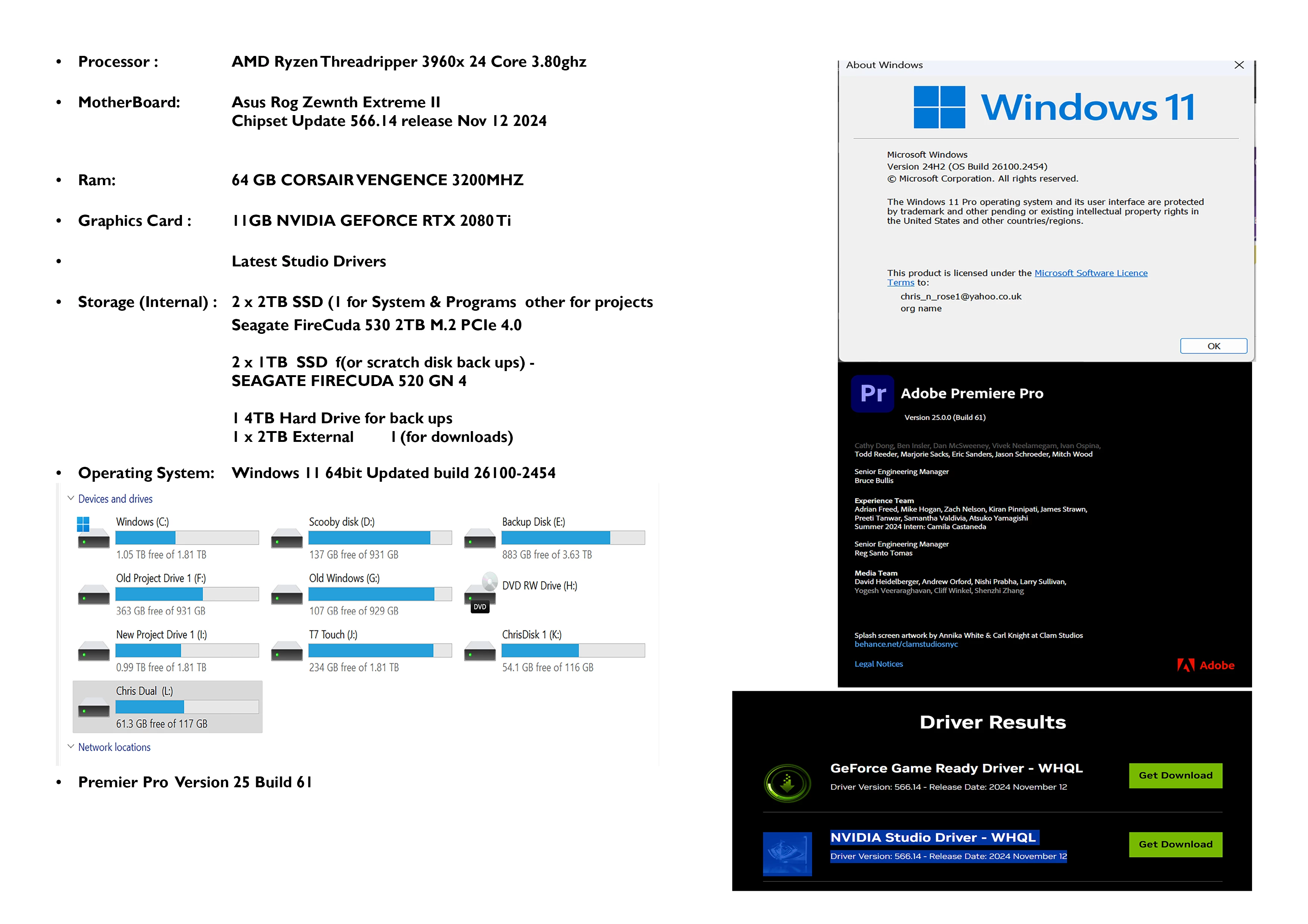 In additio to 2 more 1tb SSDs mostly clear and used for the cache and scratch discs
