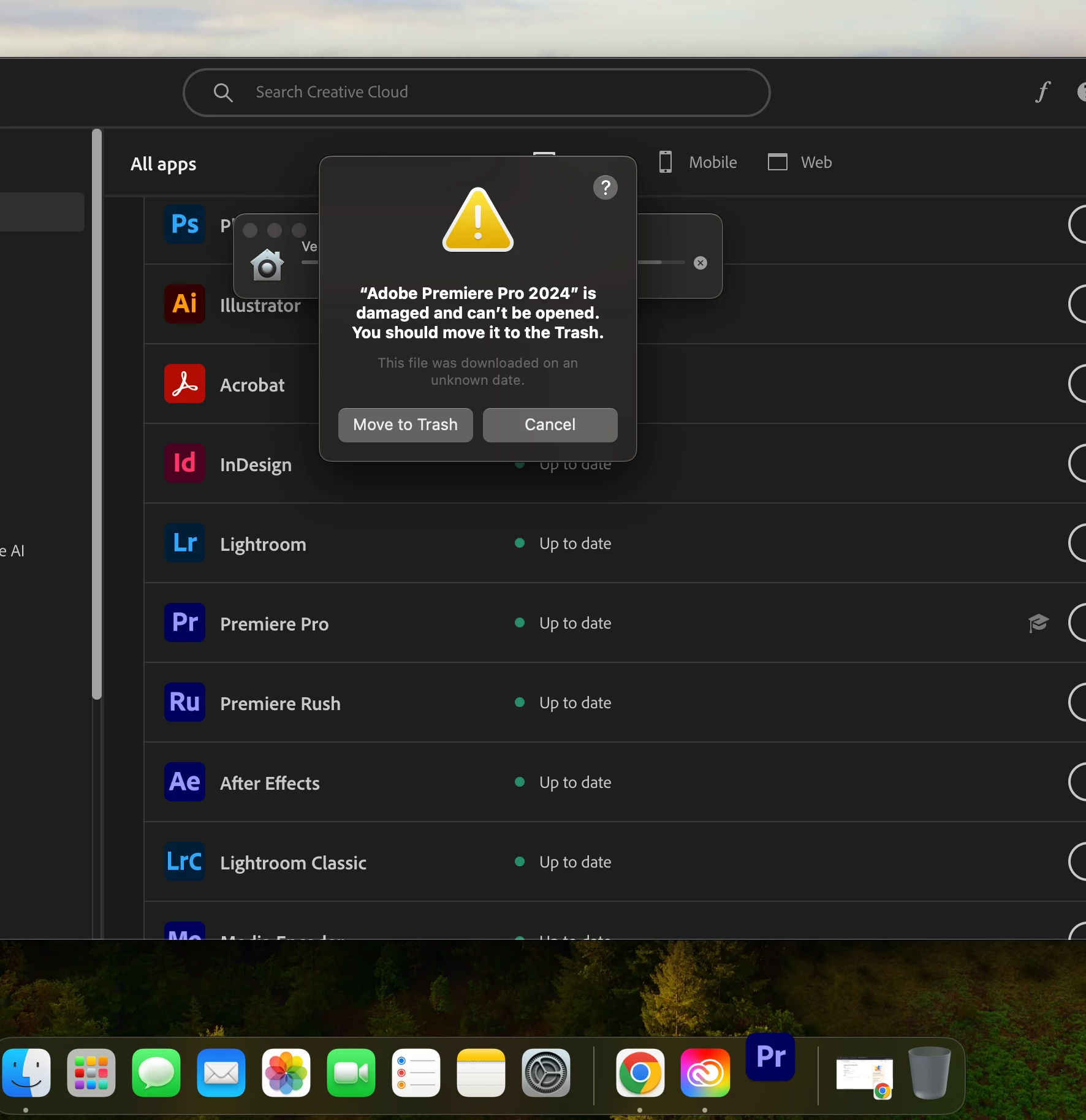 Help! The NEW update will not open on my 2021 Mac Macbook Pro. I have uninstalled it and re-installed it but it's still doing this. I've removed it from my doc station and it will not work. Someone help, please!