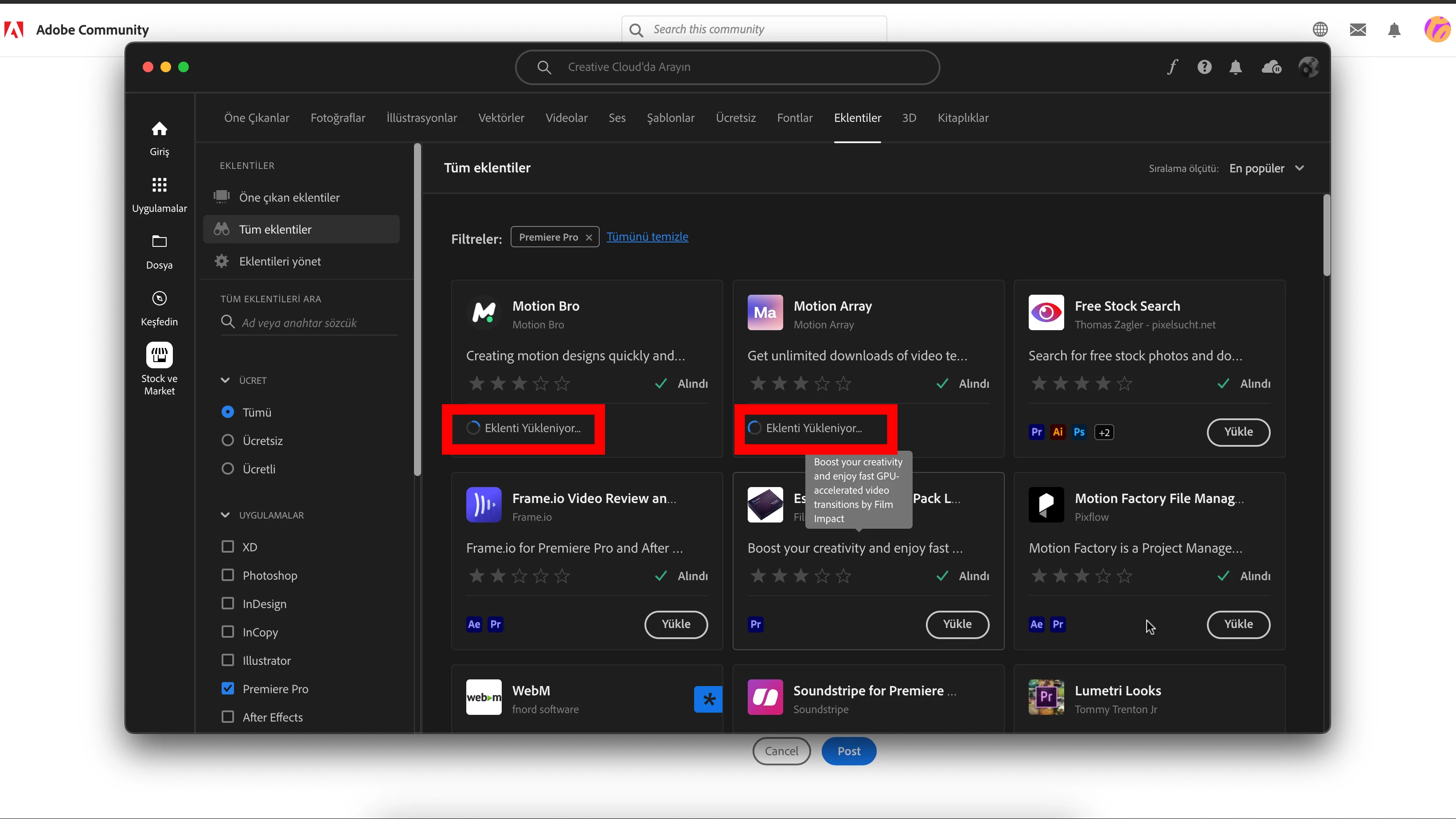 Sorry to hear about this. Is this happening with these two extensions or all of them? Have you tried signing out from Creative Cloud app & signing back in to check if it's working properly?