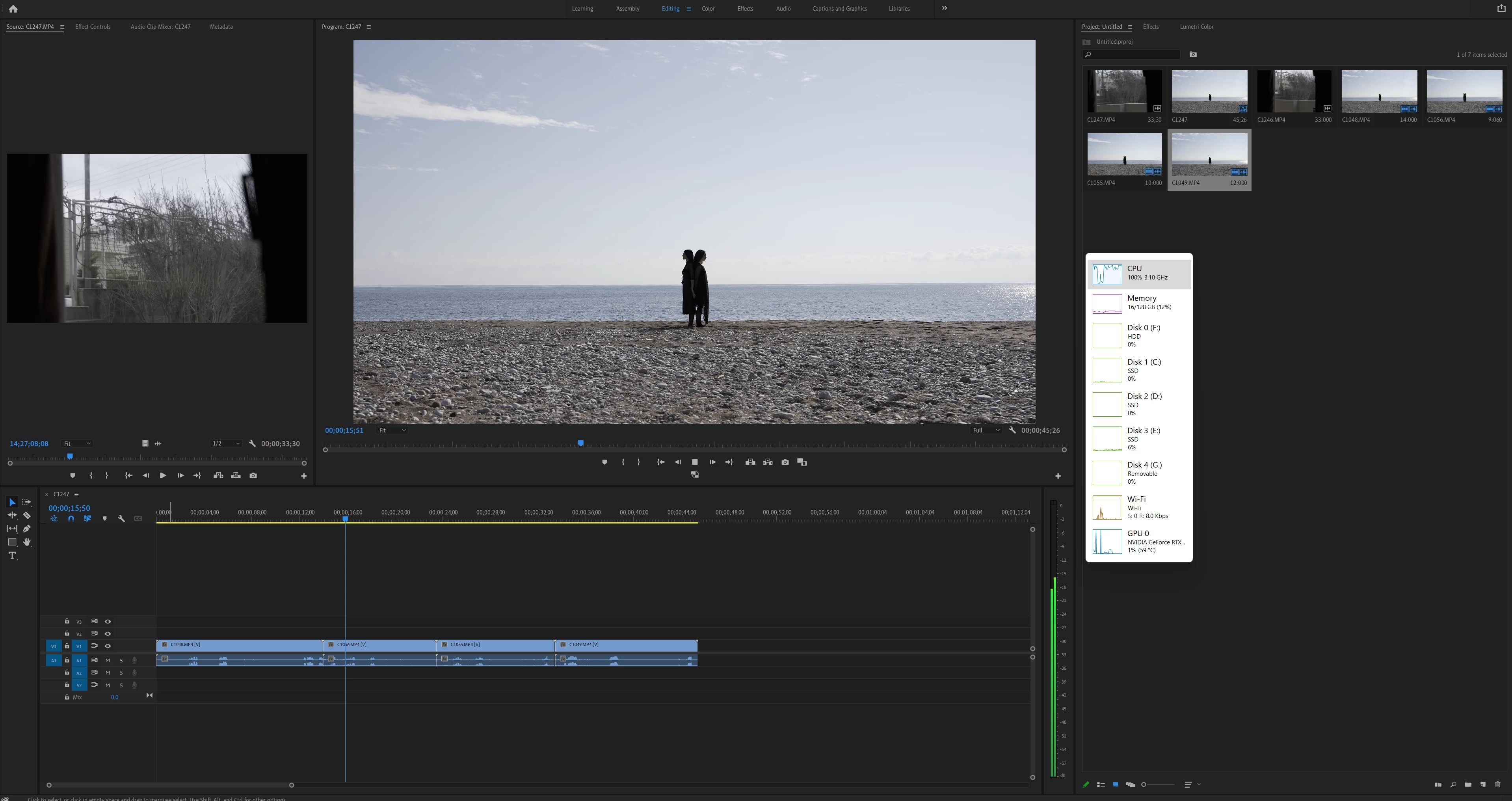 Premier Use 100% CPU and not the GPU on files Sony A7siii 4K 4:2:2 120 Fps Mp4