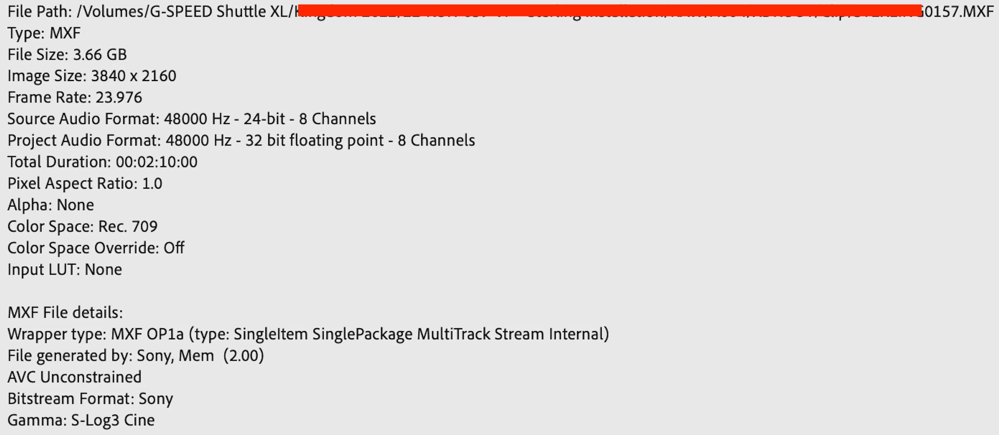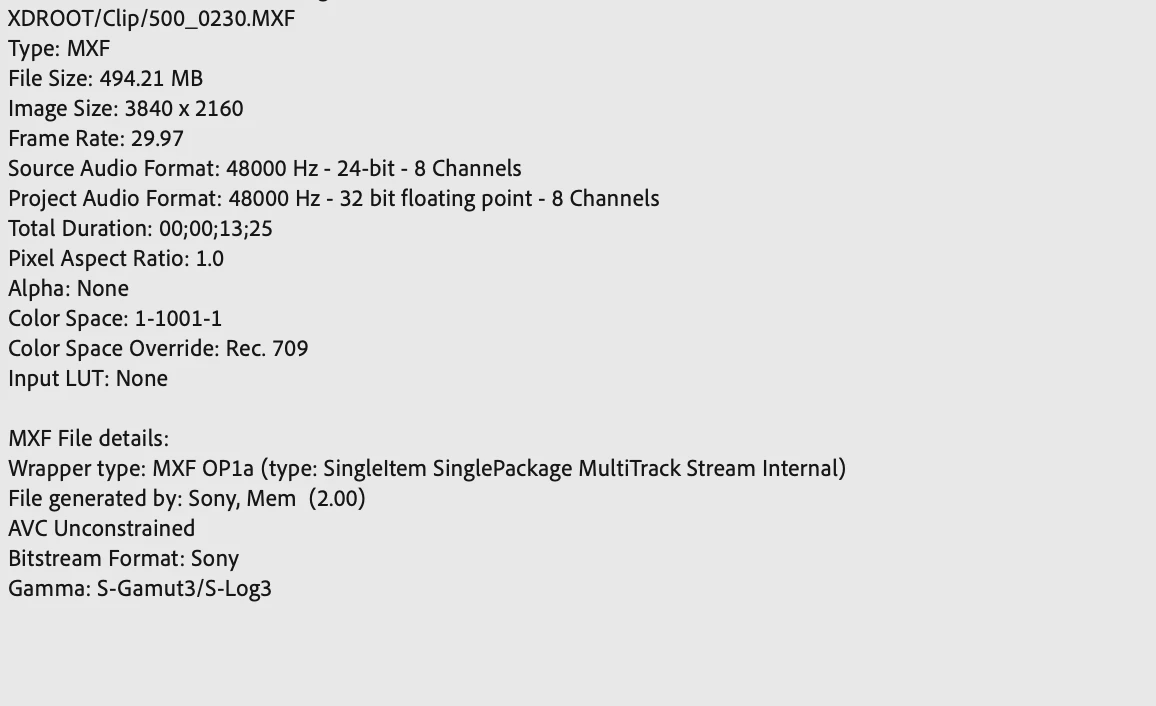 Today I'm having issues with Sony .mxf files specs attached.