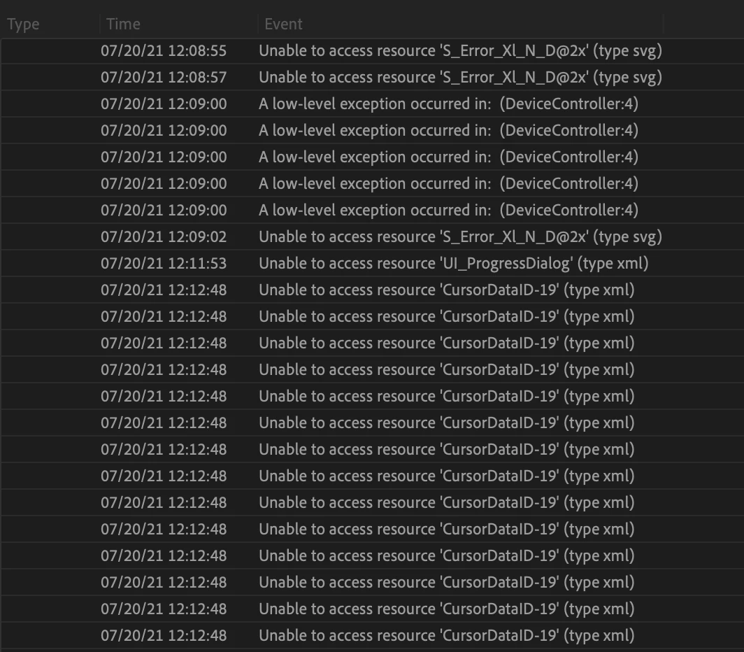 After having no issues with 15.2 on small projects, Premiere became completely unusable after about a month of working on a feature film. It really seemed like an access error, as I'd get errors like "Unable to access resource 'S_ErrorXl_N_D@2x' (type svg)," "Error Retrieving frame XXXX at time XX," and "Unable to access resource 'CursorDataID-19 (type xml)." The errors came with frozen or black video, I could still hear audio, and it usually fixed itself after about 10-20 seconds. I also couldn't export anything no matter which renderer I used. I thought it had something to do with Canon MXFs, since those have always been problematic for Premiere, but I got the same errors on ProRes 422, HQ and 4444 clips as well. The issues happened about once a day at first, and gradually increased to once every minute. At that point we shut down editorial until we figured this out.