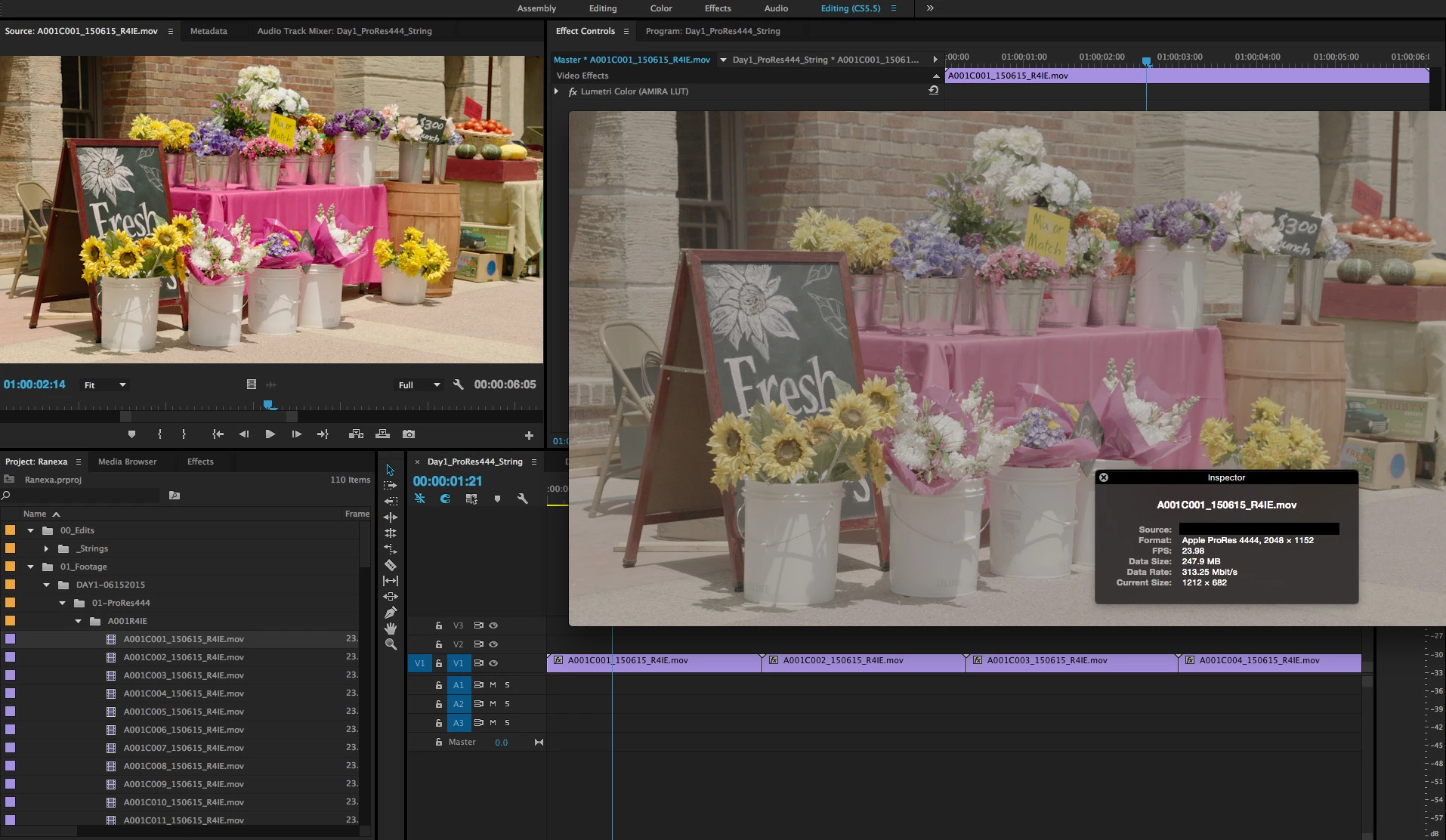 I have 3 days of footage shot on the Amira. Premiere automatically puts a LUT on the master clips when the footage is imported. I do not want a LUT to be applied automatically to the master clips. I have tried the "Disable Masterclip Effects" but this does not work! The "Disable Masterclip Effects" worked in 2014 but it does not work in 2015. I have to load each master clip individually into the source monitor, go to the effect controls panel and remove the Lumetri Color effect that has been applied. This is not feasible with days worth of footage.