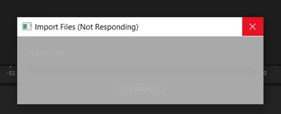 - open new project in PP, import project (Not Responding window)