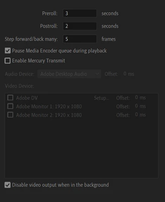 Current settings for video playback