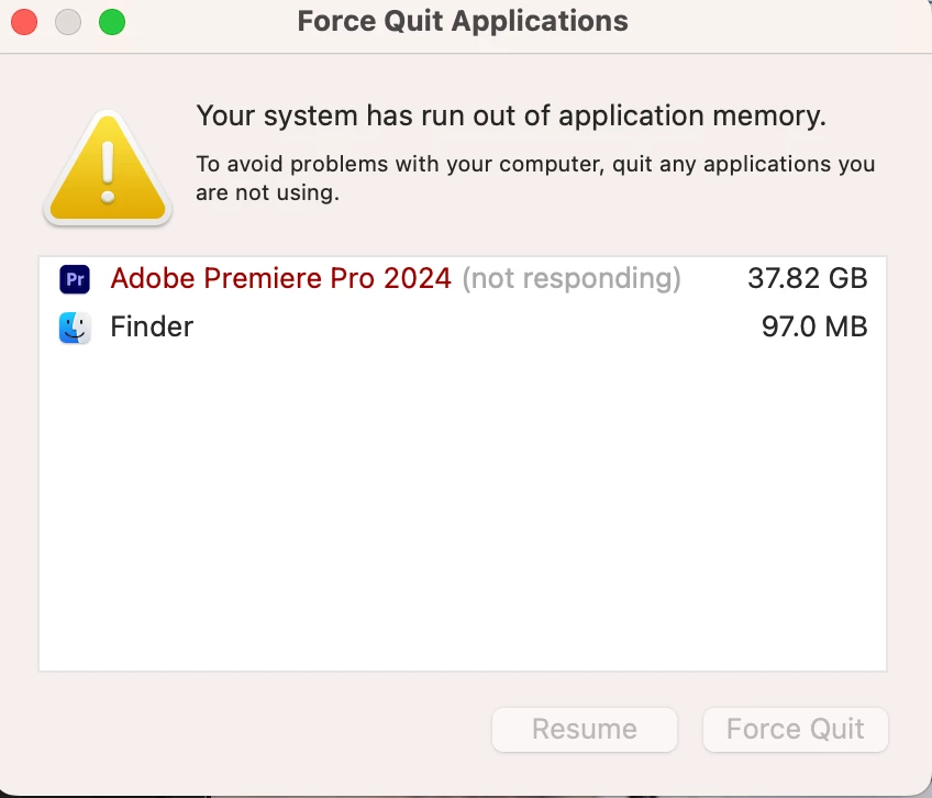 Premiere 2024 System Memory Errors