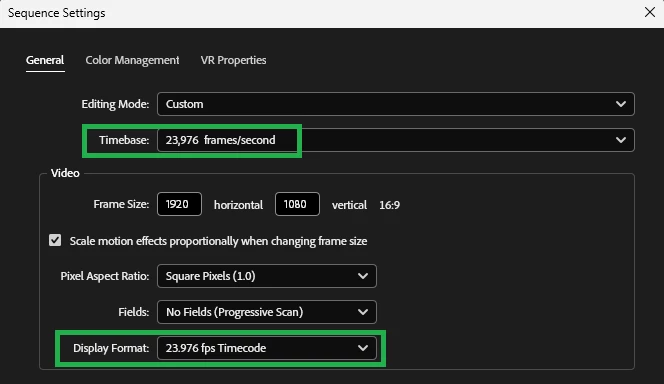 Premiere 2024 XML is 24 FPS when the sequence is 23.976 FPS