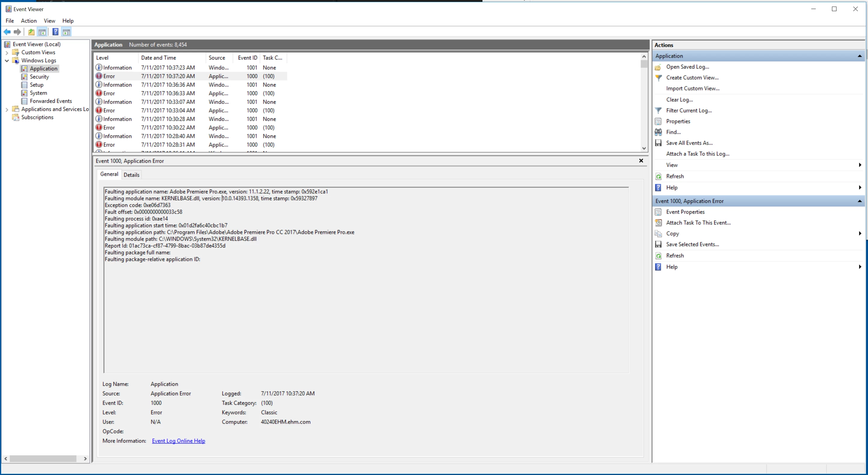 Running Premiere Pro CC 2017.11.1.2 on Windows 10 Pro 64bit