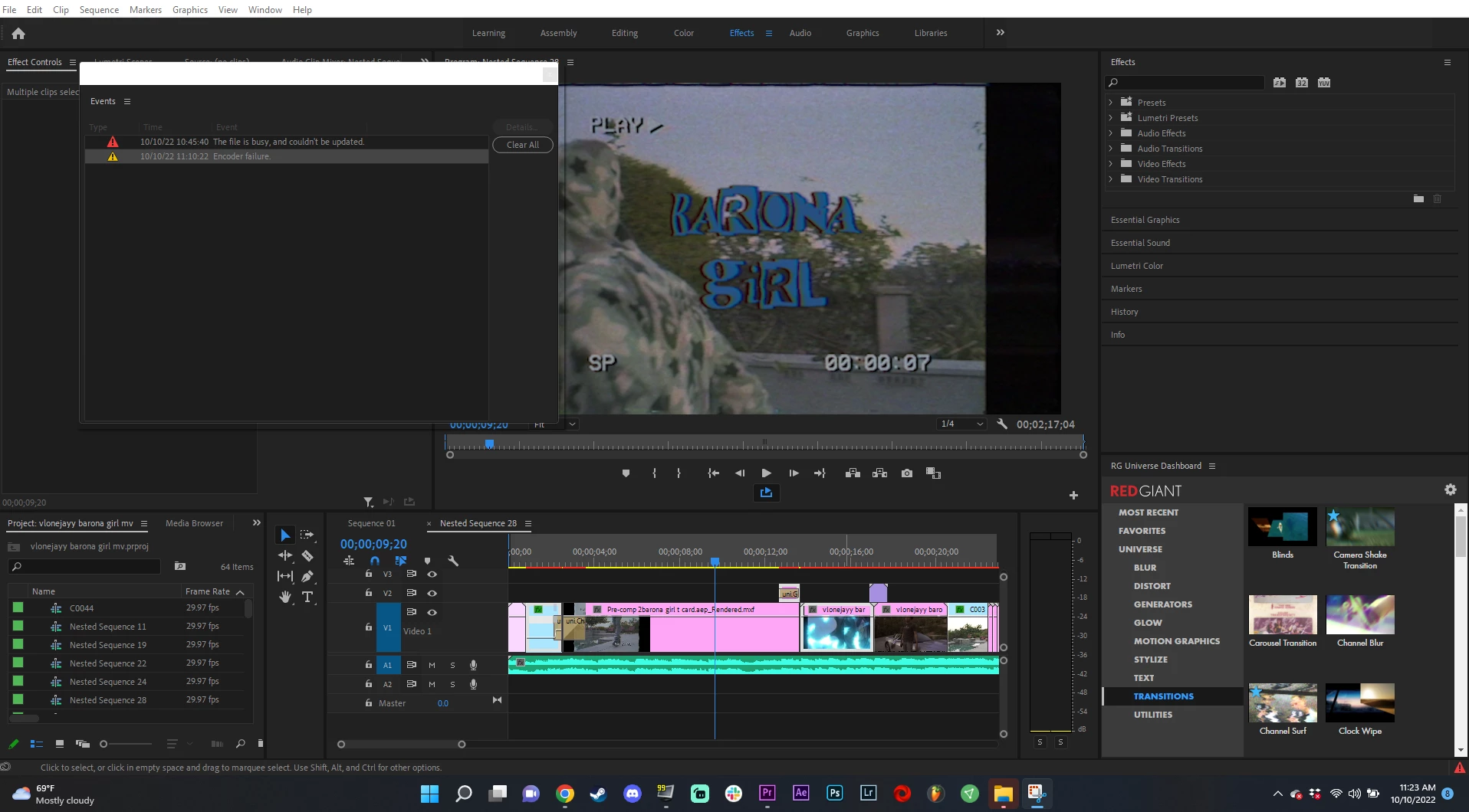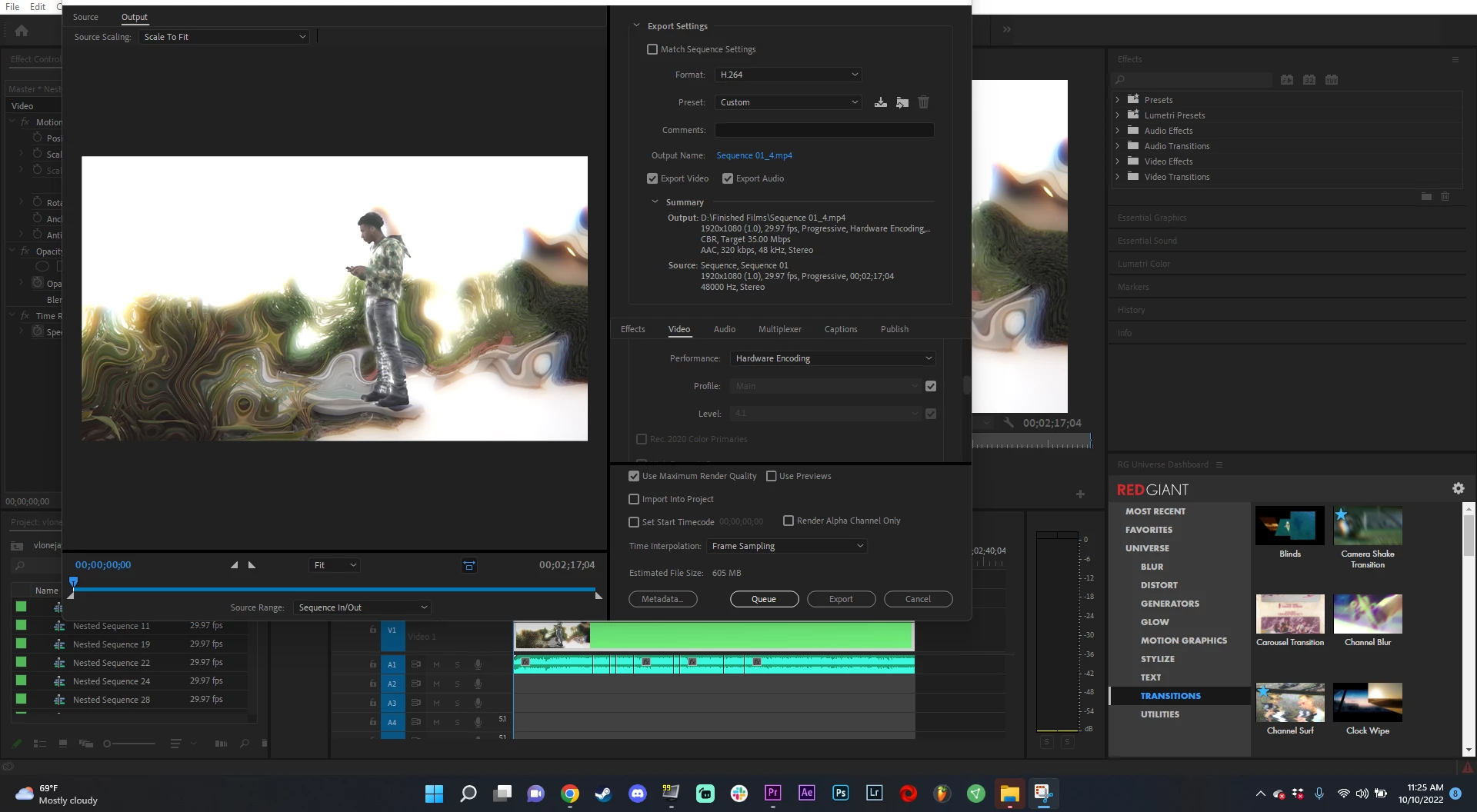 So I have a music video im trying to export and it has a lot of effects here is a youtube video of a screen capture showing my project of the examples, might be I have too many but Ive had no issues using the same effects before