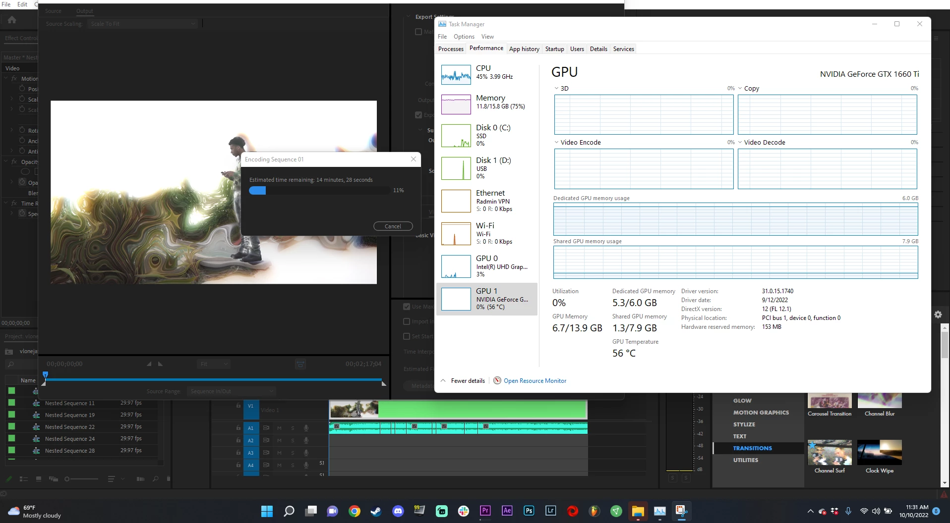I also want to mention I do have CUDA selected I've also tried clearing cache and trying different codec for export and see maybe by any chance I also tried Software only encoding. Also reinstalled the Sudio drivers NVIDIA has, so Im completely lost of options some guidance would be appreciated!